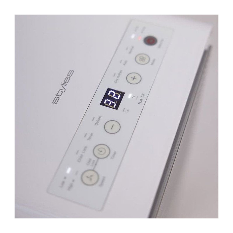 Déshumidificateur - STYLIES - Regulus - Capacité 2,5 L - Jusqu'a 12 L /jour - Timer/hygrostat/seche-linge - Blanc/gris