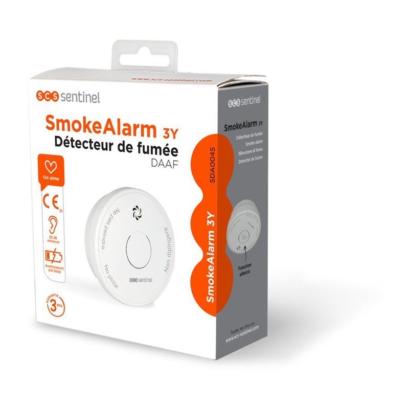 Détecteur de fumée - SCS SENTINEL - SmokeAlarm 3Y - Installation au plafond - Autonomie 10 ans - 3 ans CE