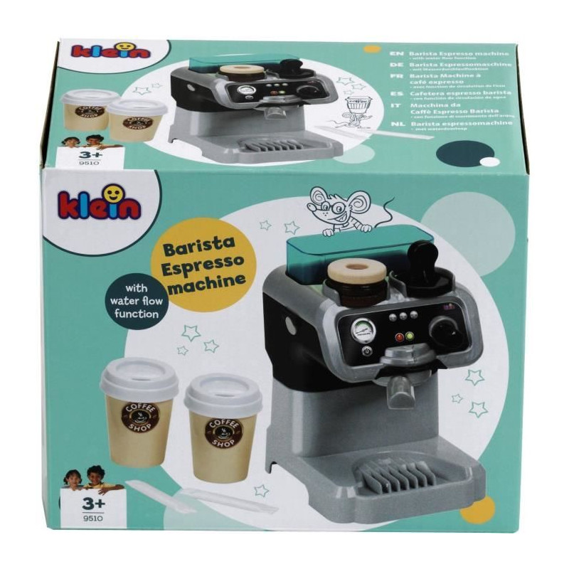 La machine a café Barista KLEIN permet aux enfants de préparer de délicieux cafés comme les grands. Avec un réservoir a eau, trois dosettes factices et de nombreux accessoires, elle offre une expérience ludique. Dimensions : 17 x 12 x 18,5 cm. a partir de 3 ans.