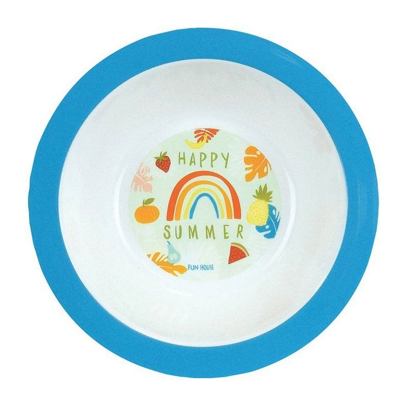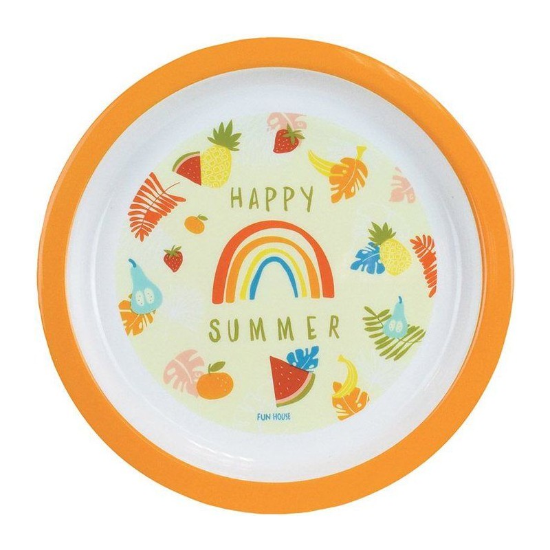Lot vaisselle - FUN HOUSE - LES AMIS FRUITS - Verre, Assiette creuse Ø16 cm, Assiette plate Ø22 cm, Couverts, Peluche 27 cm