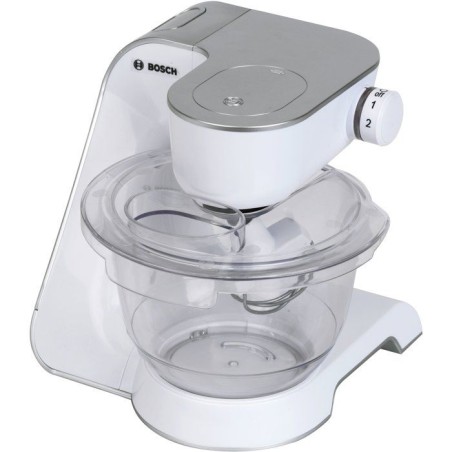 Offrez aux enfants une expérience de jeu unique et amusante avec ce robot de cuisine sous licence Bosch en plastique de grande qualité, reproduction fidele du modele original. En plus de son design tres moderne, il fonctionne presque comme le vrai grâce au fouet qui peut battre ou mélanger sur 2 vitesses mais s'arrete a la moindre résistance. Le fouet est amovible et peut donc etre nettoyé facilement. Avec ce robot, les enfants pourront apprendre a cuisiner en imitant les grands, tout en s'amusant. Il est idéal pour compléter une cuisine ou offrir un cadeau original. Stimule la créativité, l'imagination et l'habileté manuelle des enfants, tout en encourageant le partage et les moments conviviaux. Dimensions hors emballage : 19 x 21 x 19 cm. Piles non fournies : 3 x R6-AA. A partir de 3 ans.