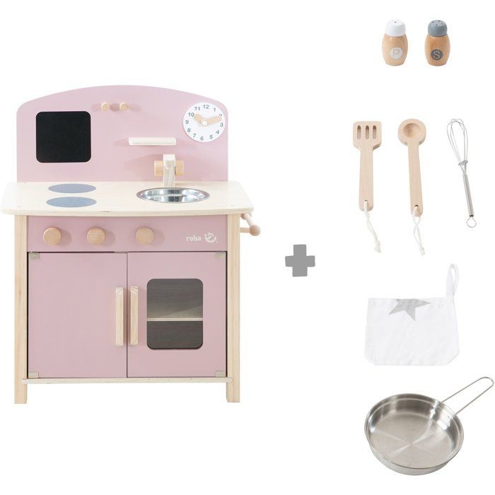Cuisine en bois pour enfant - ROBA - Équipée avec accessoires - Rose / Naturel