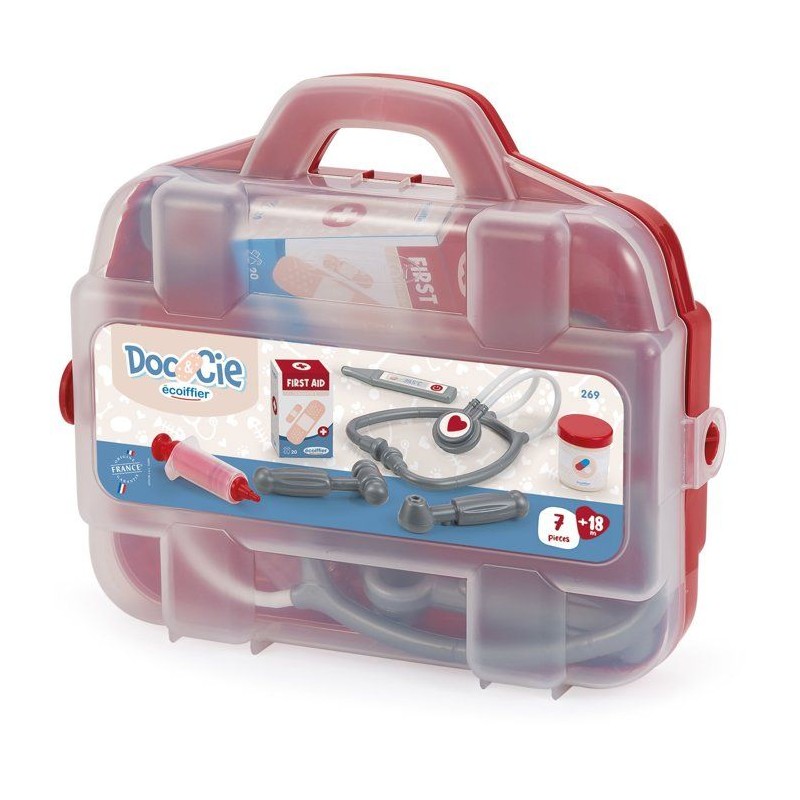 Une valisette en partie transparente pour ranger les 7 accessoires indispensable a tout docteur. Conseillé des 18 mois. Origine France Garante.