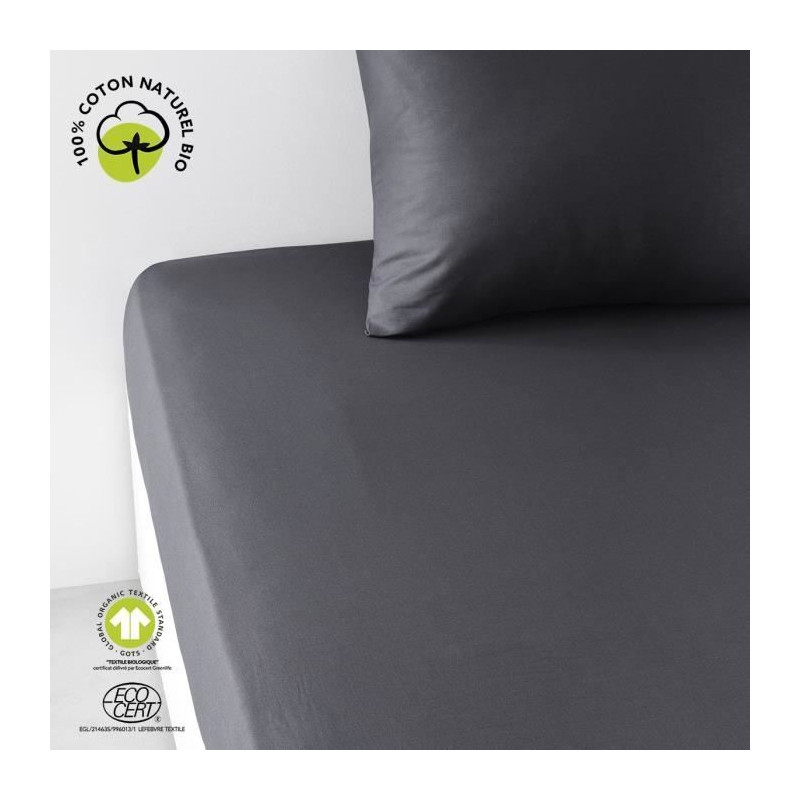 Drap housse - TODAY - 180 x 200 cm + 30 cm - Coton - Organic Fusain