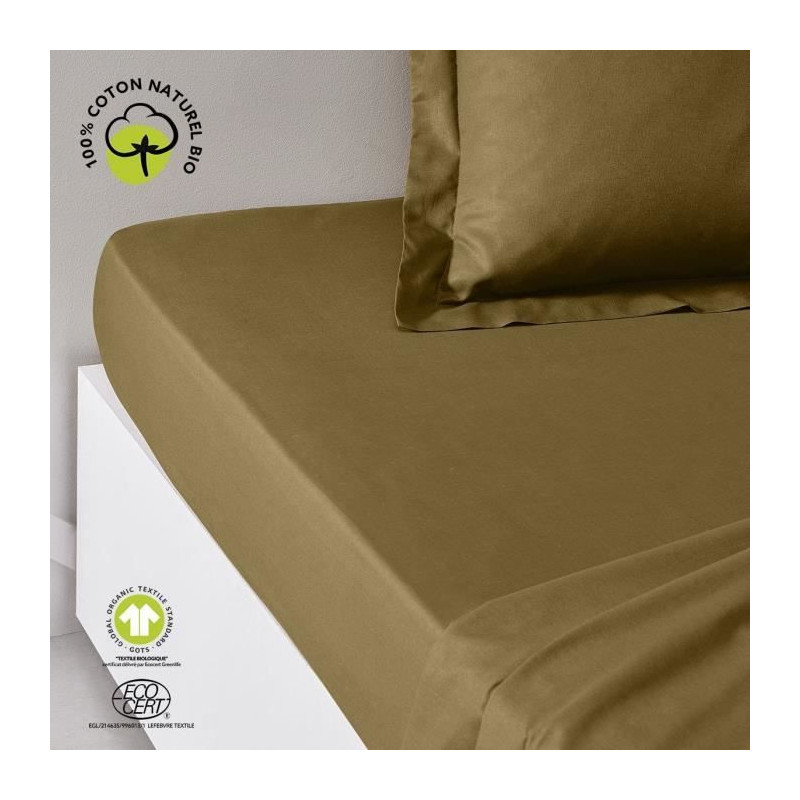 Drap housse - TODAY - 180 x 200 cm + 30 cm - Coton - Organic Bronze