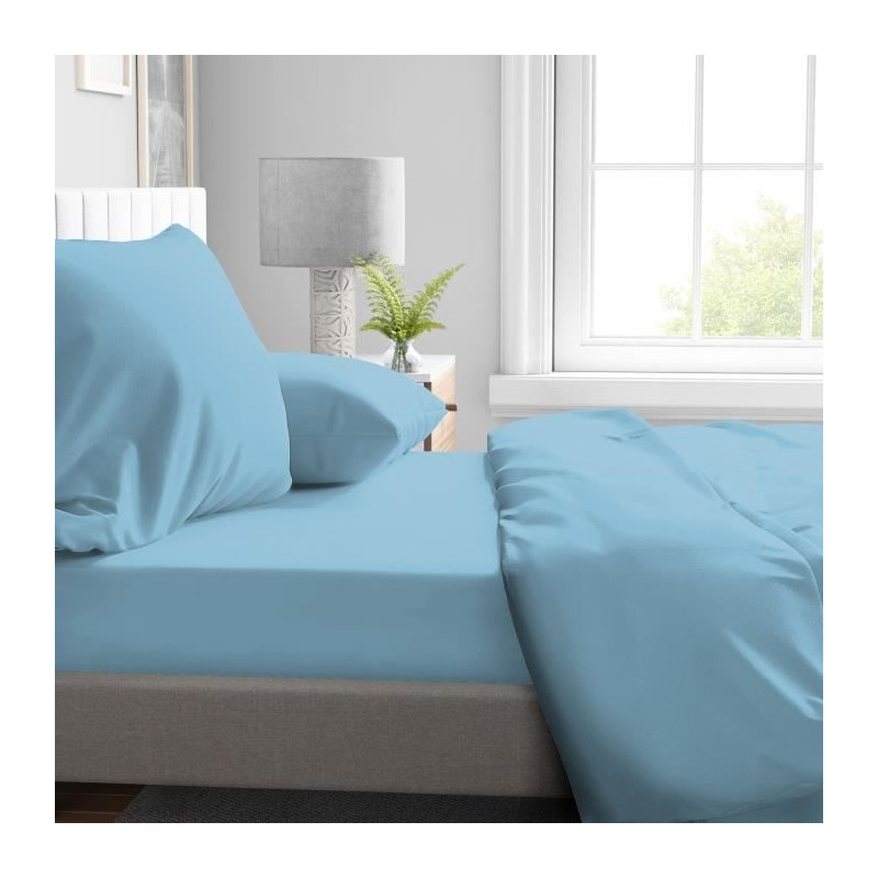 Fitted sheet - HOME LINGE PASSION - HP72123 - 82 g Microfiber - 140 x 190 cm - 30 cm pocket - Sky blue