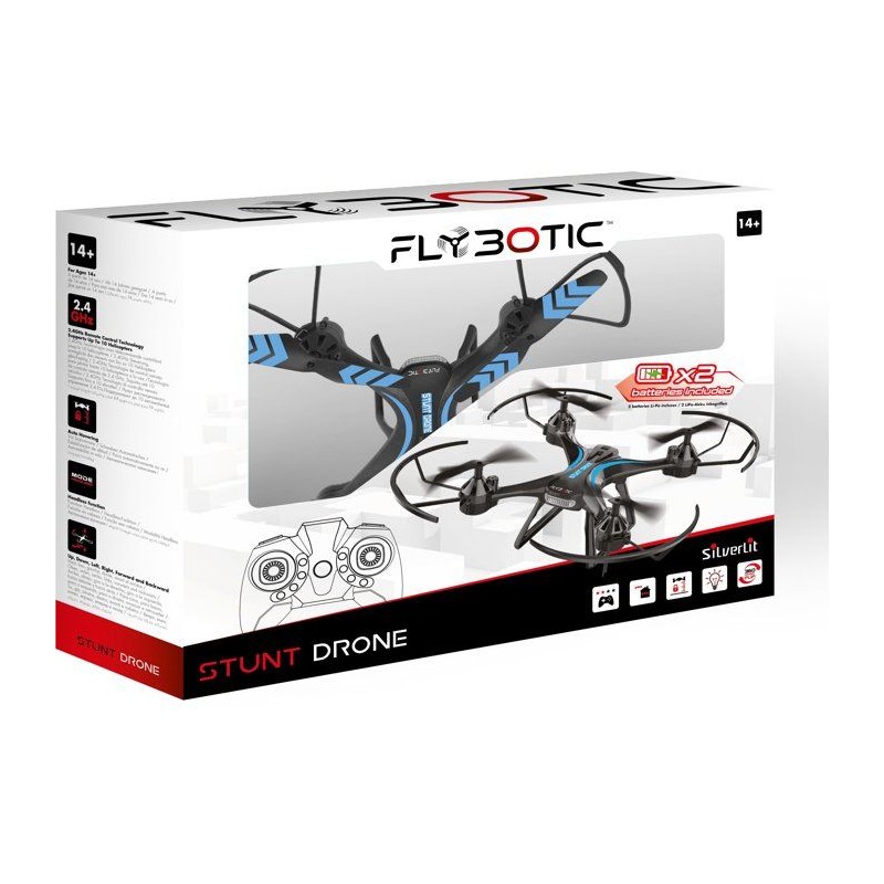 Drone - FLYBOTIC - Stunt Drone - 2,4 GHz - Vol stationnaire - 360° Flip - 2 batteries incluses - Des 14 ans