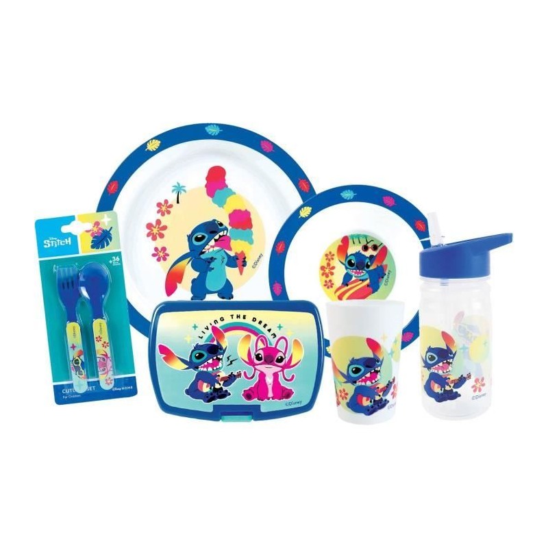 Tableware set - FUN HOUSE - LILO AND STITCH Glass, plate Ø22 cm and Ø16 cm, cutlery, water bottle and snack box