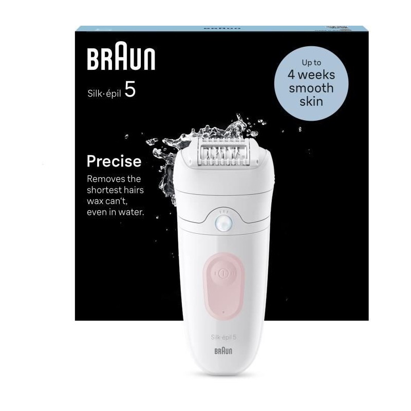 Épilateur électrique sans fil - BRAUN - SILK EPIL 5-000 - Étanche - 2 vitesses - Rose / Blanc