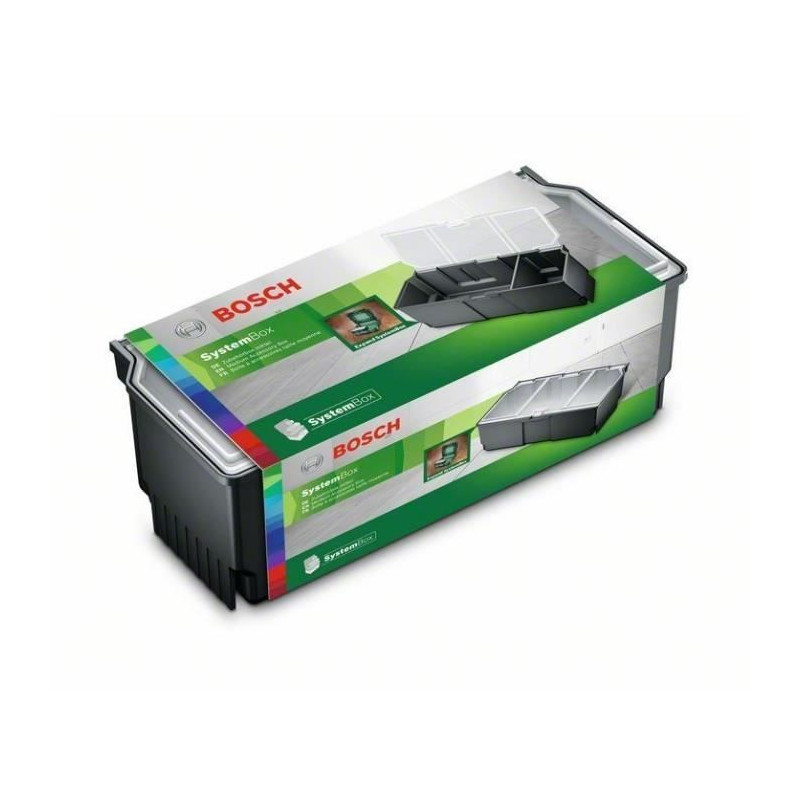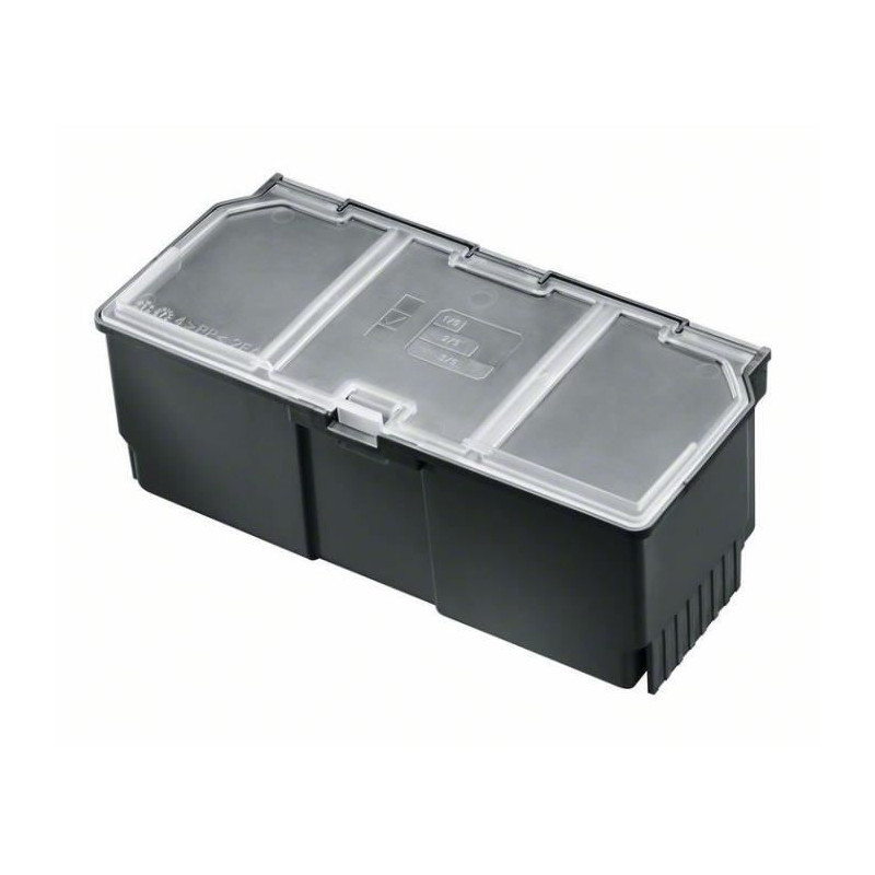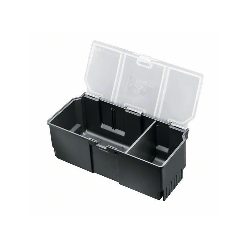 The medium accessory box (2/9) from Bosch fits perfectly to the system box (3165140951883). This box is very practical because the interior is customizable and can be extended with accessory boxes (3165140951913, 3165140951890) and lid boxes (3165140961905). In addition, it is stackable