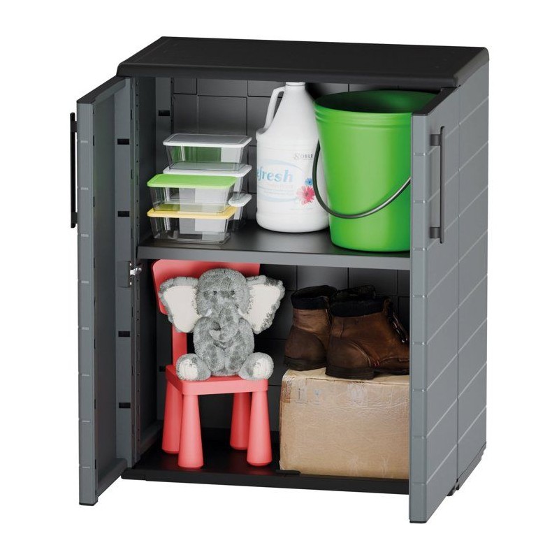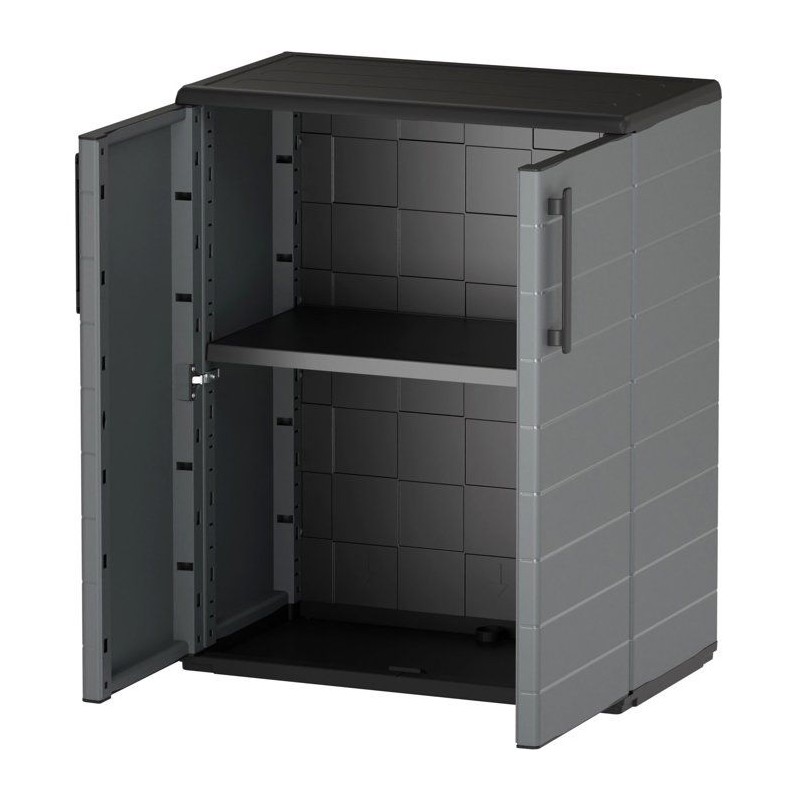 Compacte, pratique et toujours bien organisée ! Parfaite pour les petits espaces, cette armoire basse TOOD offre une solution de rangement efficace grâce a ses 2 portes et son étagere interne. Conçue en polypropylene, elle résiste facilement aux usages du quotidien et se nettoie en un clin d'oeil. Idéale pour un garage, une buanderie ou un atelier, elle se glisse partout tout en apportant un style discret et moderne.