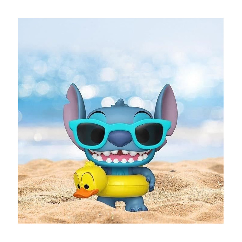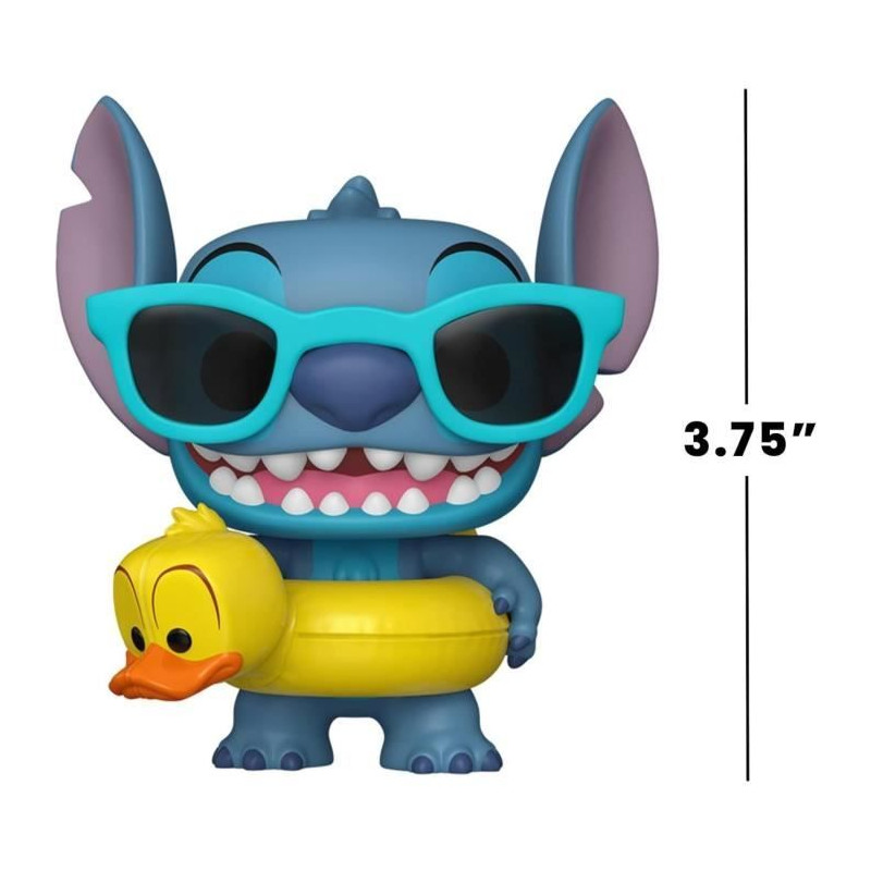 Ajoutez une touche de fun a votre collection avec cette figurine Funko Pop! de Stitch en mode vacances. Mesurant 9 cm, elle est équipée de lunettes de soleil turquoise et d'une bouée canard jaune, parfaite pour les fans de Disney et les enfants.