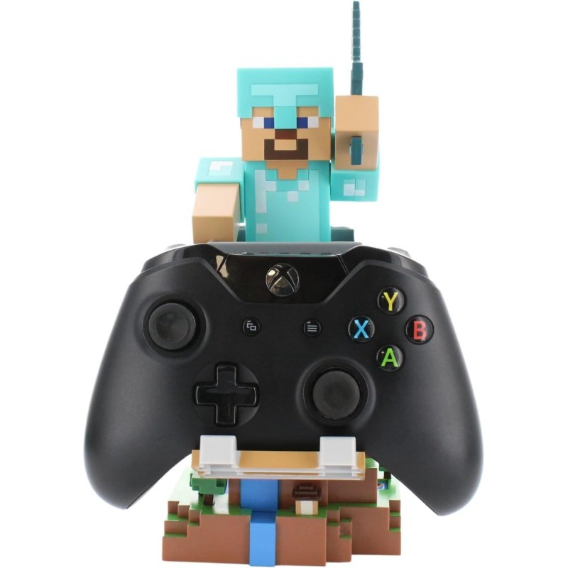 Figurine Minecraft Steve Armure Diamant - EXQUISITE GAMING - Cable Guys - Support écouteurs, smartphone ou petit accessoire - 2