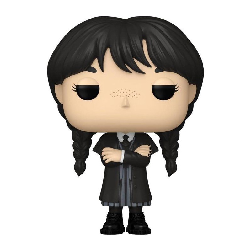 Figurine Funko Pop! représentant Wednesday Addams, héroine de la série Wednesday diffusée sur Netflix. Cette version la montre dans son manteau noir emblématique, fidele a son apparence dans la série. Réalisée en vinyle sous licence officielle, elle est présentée dans sa boîte vitrine d'origine. Idéale pour les fans de la famille Addams et les collectionneurs de figurines Funko Pop!.