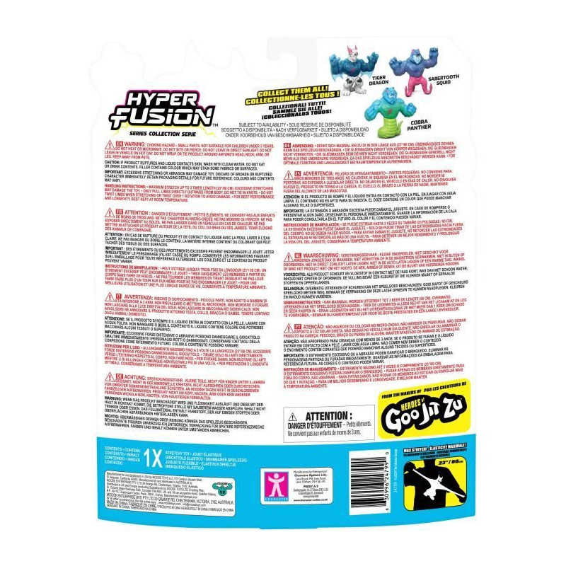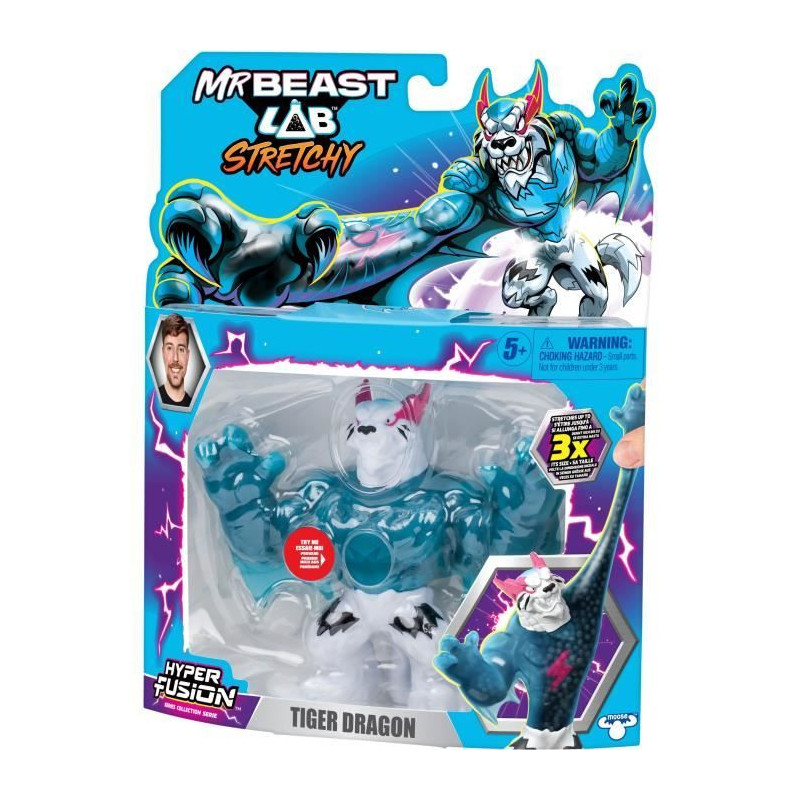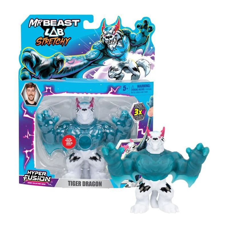 Voici les NOUVELLES figurines MrBeast Lab : les héros élastiques ! Inspirée de MrBeast, ta panthere ou ton tigre a fusionné avec un autre animal et s'est transformée en un héros souple et élastique unique. Chaque jouet mesure 11 cm et contient une substance spéciale que tu devras découvrir en étirant et en pressant ton héros. Quelle substance vas-tu trouver ? Et ce n'est pas tout ! Les héros MrBeast Lab sont incroyables : ils peuvent s'étirer jusqu'a trois fois leur taille. Prépare-toi a lancer une TERRIBLE ATTAQUE. Collectionne ces trois pantheres élastiques : chaque héros renferme une substance gluante unique. Rassemble le Tigre dragon, le Cobra Panthere et la Pieuvre a dents de sabre et embarque pour une super aventure avec le NOUVEAU coffret MrBeast Lab Stretchy Heroes, par Heroes of Goo Jit Zu.1 figurine élastique MrBeast Lab Fusion