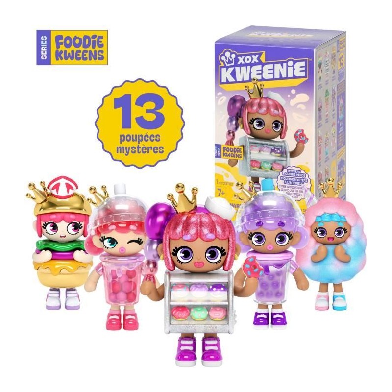 Découvre la collection iconique des "Kweenies", la série Foodies est composée de 13 poupées ! Chaque boîte est surprise, tu pourras ainsi découvrir une poupée a l'ouverture. 13 Kween a collectionner aux finitions uniques et aux looks sensationnels.