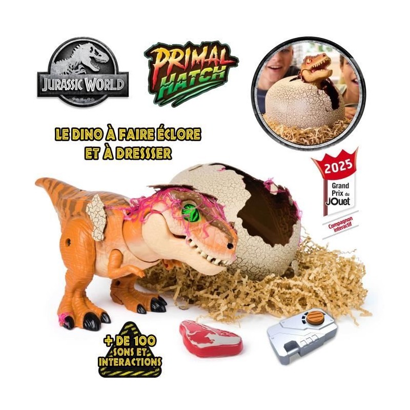Un dinosaure Jurassic World a faire éclore comme au temps du Jurassique ! Dresse-le et interagis avec lui pour déterminer sa personnalité : agressif ou docile. 2 accessoires inclus pour l'apprivoiser. Plus de 100 sons et réactions. Fonctionne avec 3 piles LR6 fournies. A partir de 5 ans.