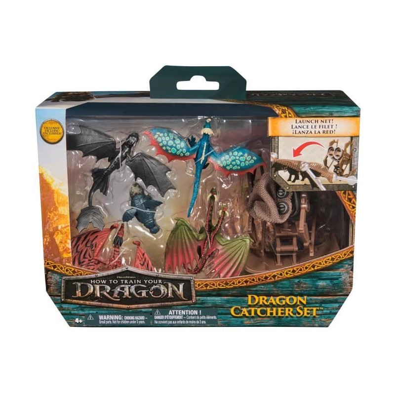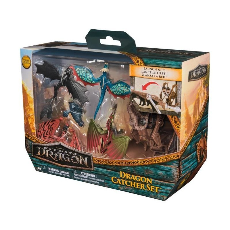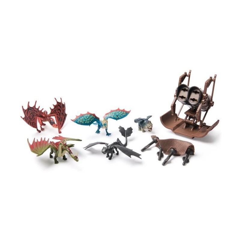 Un coffret pour jouer a capturer les dragons comme dans le film. Utlise le grappin pour lancer le filet et capturer l'une des 5 figurines de dragons incluses. 5 mini figurines de dragon fournies pour revivre les scenes du film Dragons. Des 4 ans.