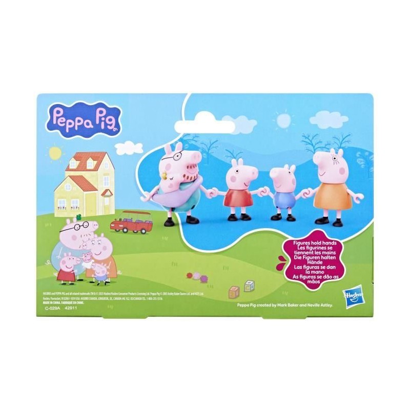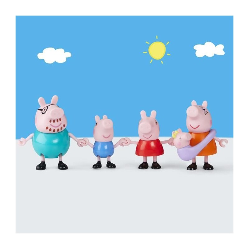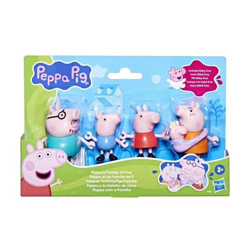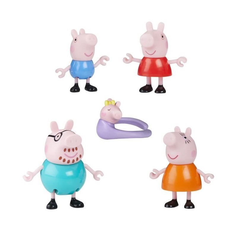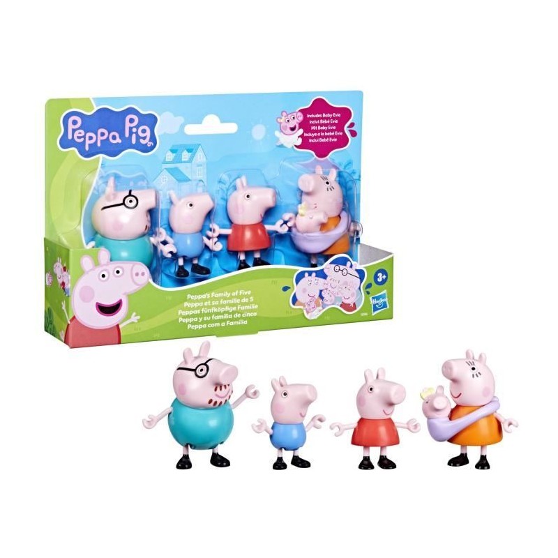 Peppa Pig Peppa et sa famille de 5 avec bébé Evie, figurines articulées qui se tiennent la main, jouets préscolaires pour filles et garçons, des 3 ans