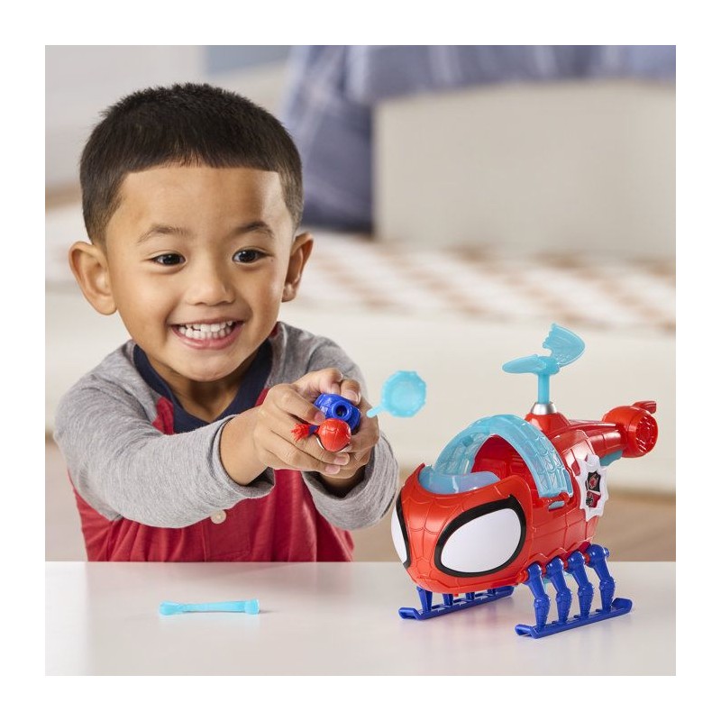 Marvel Spidey et ses Amis Extraordinaires Hélico de l'équipe Spidey, figurine de 7,5 cm et véhicule avec projectile, jouets pour enfants, des 3 ans