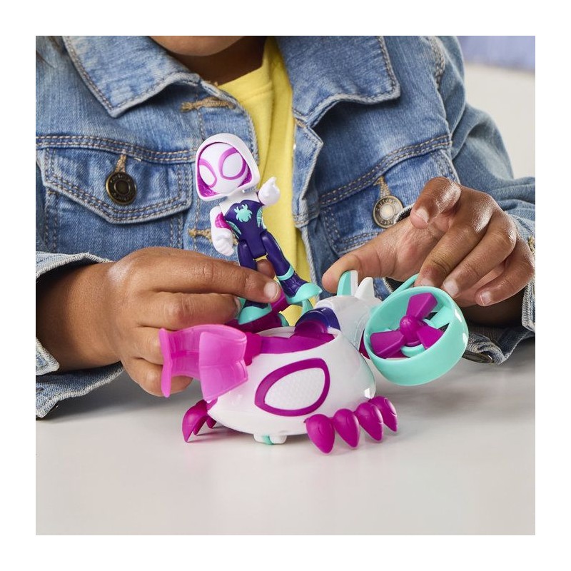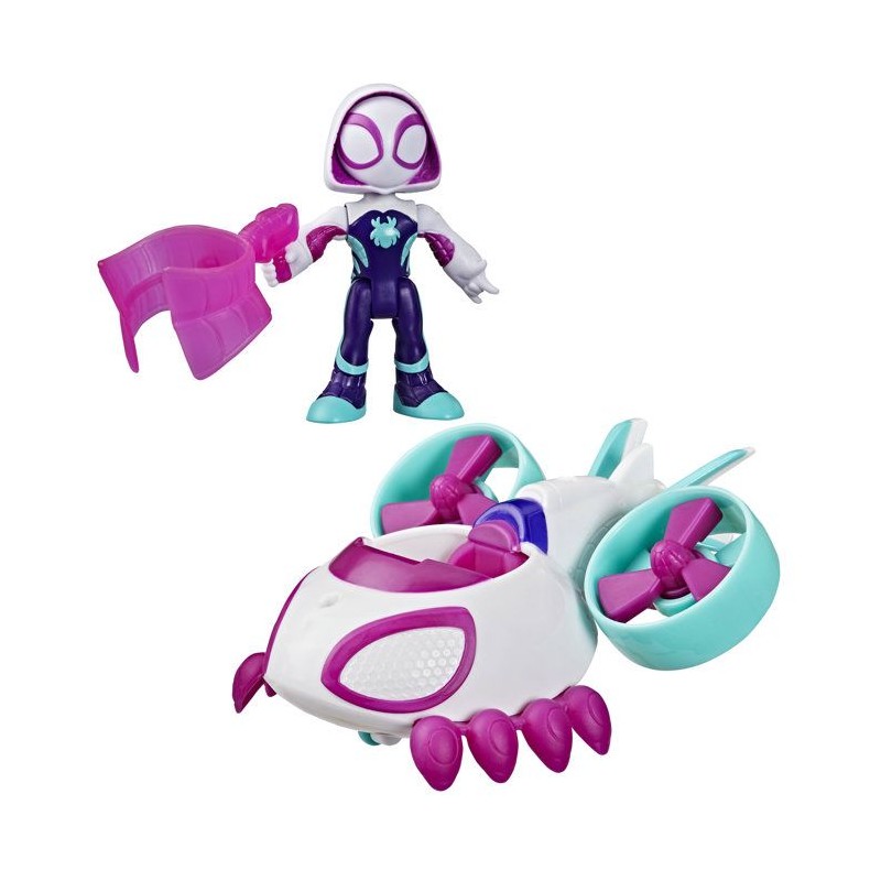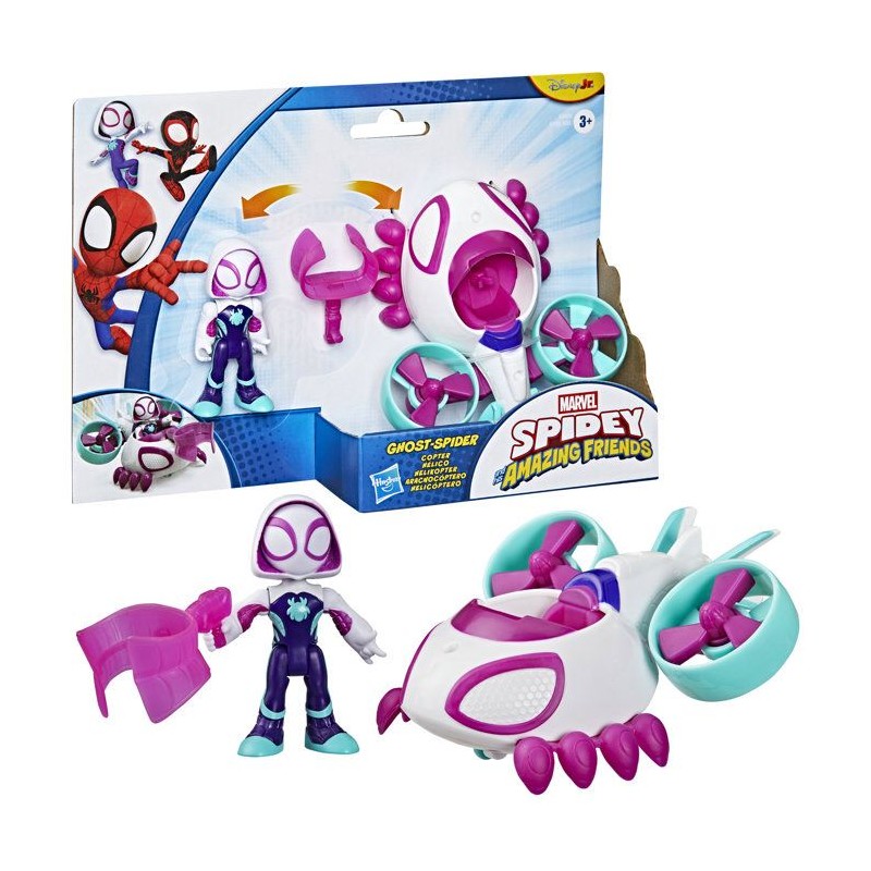 Véhicule Hélico de Ghost-Spider avec figurine de 7,5 cm et accessoire, jouets pour enfants, des 3 ans, Spidey et ses Amis Ex
