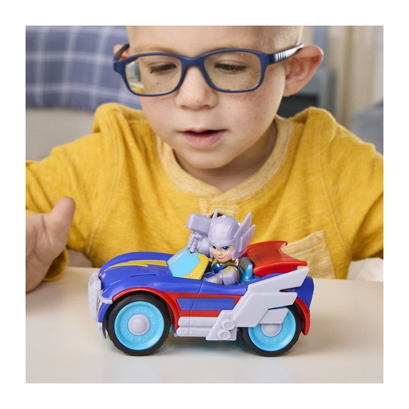 Marvel Iron Man et Ses Amis Extraordinaires, Figurine Thor de 7,5 cm et véhicule Foudremobile, Jouets de Super-héros, des 3 Ans