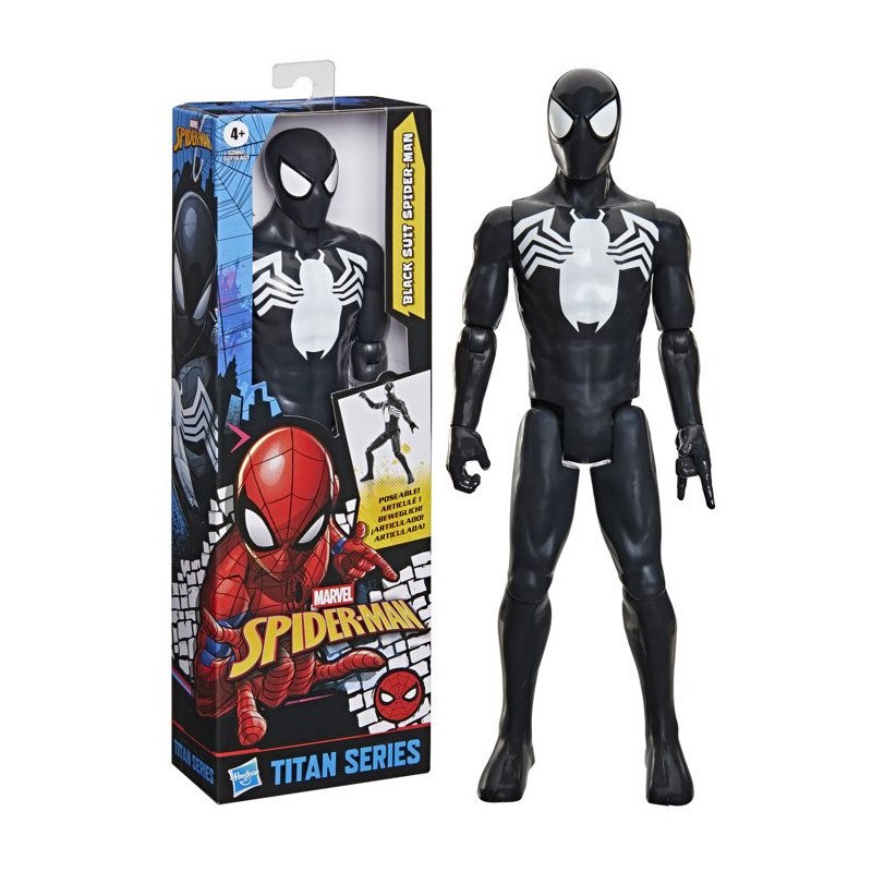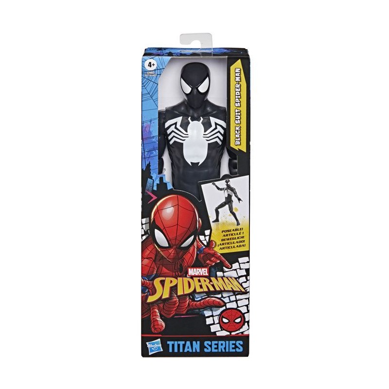 Marvel Spider-Man Titan Series, figurine deluxe Spider-Man en costume noir de 30 cm, jouets de super-héros pour enfants, des 4 ans