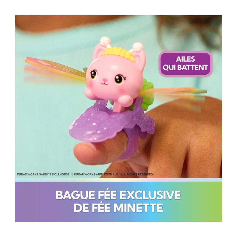 Découvre le monde féérique Gabby et la Maison Magique Fairylandia ! Un univers magique pour les fées Fairylandia : place la bague Fée Minette dans l'univers pour la voir voler. Habille les figurines chats-oursons pour les transformer en fées trop mignonnes. Coffret de jeu comprenant 1 bague Fée Minette exclusive, 2 figurines chats-oursons, 1 boîte surprise et 7 accessoires. L'univers peut se connecter a la Maison Magique (vendue séparément). Boîte ouverte. A partir de 3 ans.