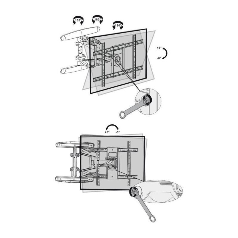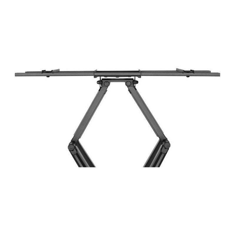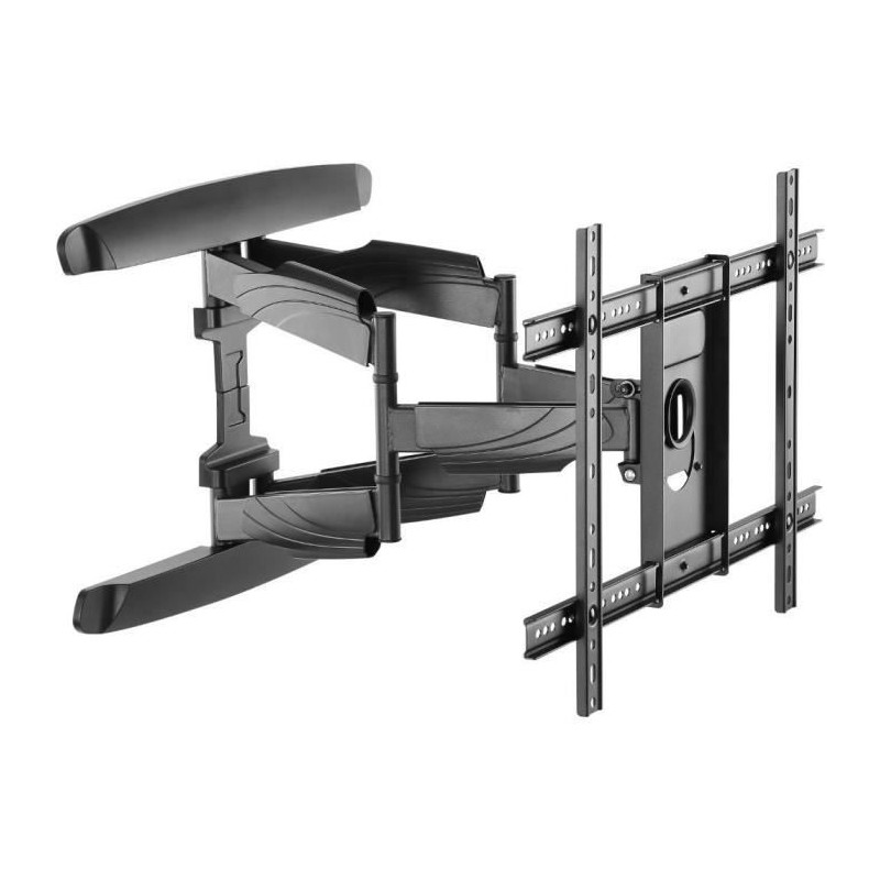 Le support TV extensible Stell SHO 7620 est conçu pour les téléviseurs de 40 a 70 pouces, avec une capacité de charge de 40 kg. Il offre une inclinaison de +5° a -8° et un pivotement de +/-60°. Sa conception coulissante permet un ajustement de la distance jusqu'a 51,7 cm du mur, tout en garantissant un alignement parfait grâce a la correction de niveau.