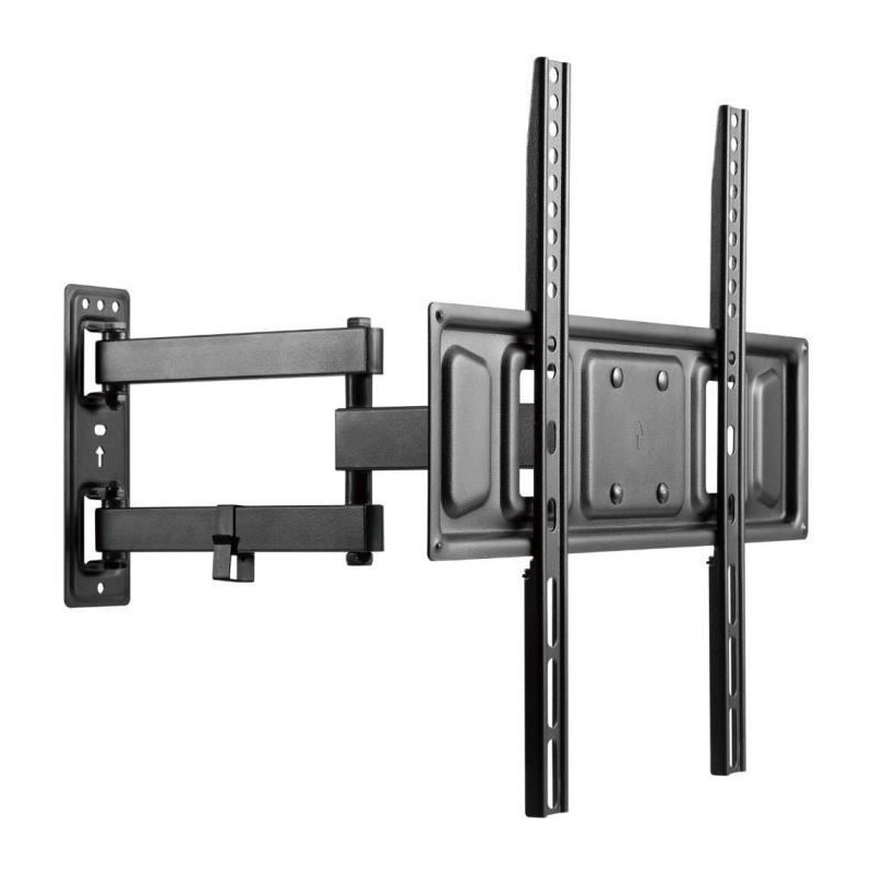 RÉGLAGE EXTENSIBLE. MOUNT SLIM POUR LA TÉLÉVISION Sencor SHT B362 - Support extensible et réglable pour TV Taille min. de l'écran : 32" Taille max. de l'écran : 55" Inclinaison vers le haut : +10° Inclinaison vers le bas : -15° Orientation : +/-90° Rotation : +/-3° Distance min. du mur : 7,1 cm Distance max. du mur : 43,1 cm Charge max. : 35 kg Largeur : 455 mm Hauteur : 420 mm Profondeur : 71 mm Espacement min. : 30x75 mm Espacement max. Espacement : 400x404 mm VESA 75x75 VESA 100x100 VESA 100x150 VESA 100x200 VESA 150x100 VESA 150x150 VESA 200x100 VESA 200x200 VESA 300x200 VESA 300x300 VESA 400x200 VESA 400x300 VESA 400x400 Couleur : Noir Matériau : Acier "Verrouillage" contre le décrochage