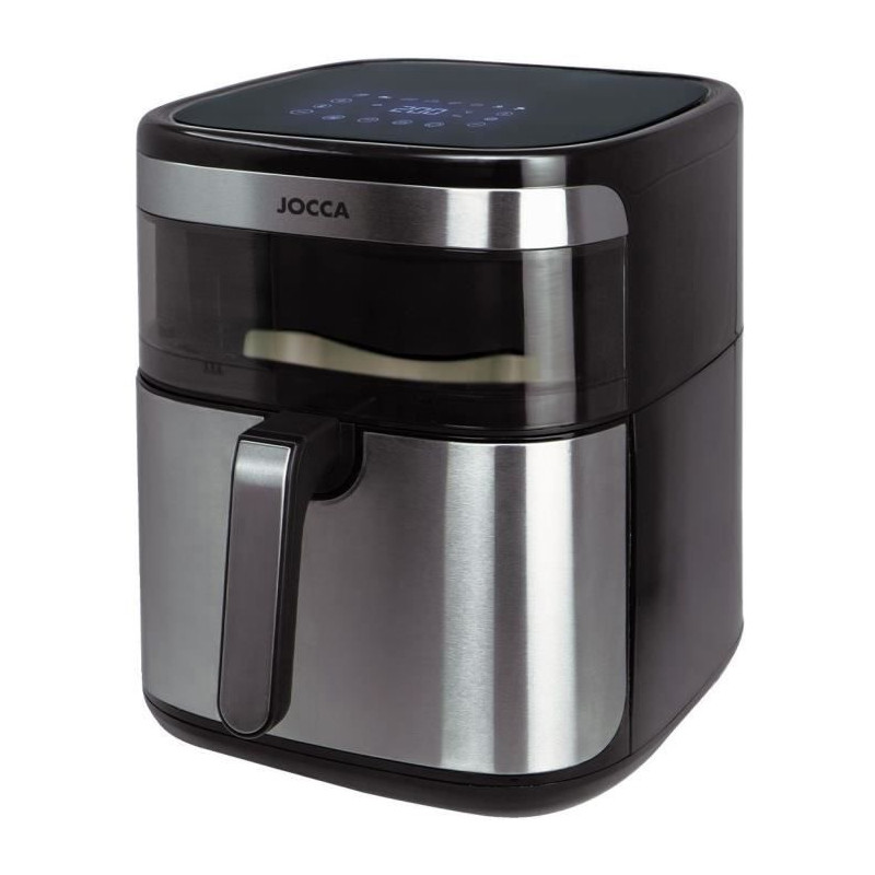 Découvrez la friteuse a air chaud JOCCA 2385, d'une capacité de 10L. Avec ses dimensions de 30,5x43,5x36,4 cm, elle permet de cuire vos aliments de maniere saine sans ajout de graisse. Équipée d'un écran tactile LED, de 8 programmes prédéfinis et d'une fonction de maintien au chaud, elle est idéale pour frire, cuire, griller et réchauffer vos plats.