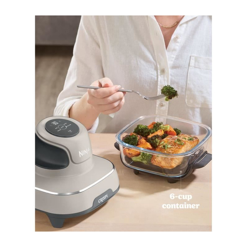Friteuse sans huile portable NINJA - CRISPI - Récipients 1,4L et 3,8L - 4 programmes prédéfinis - 1400W - Beige