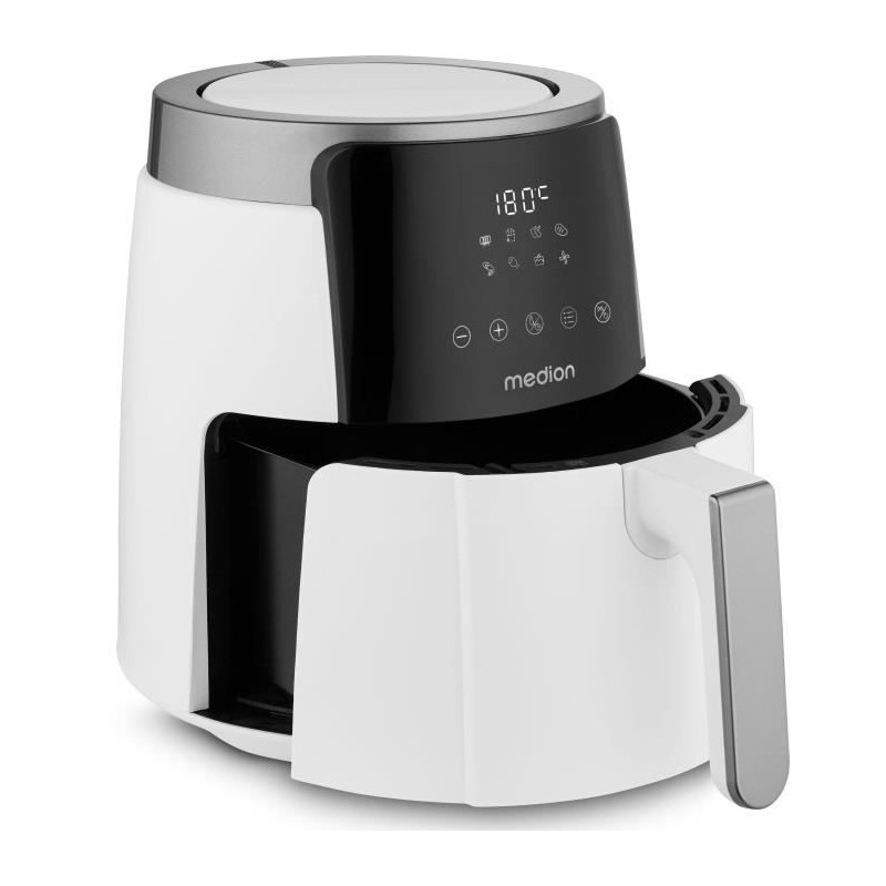 Friteuse a air chaud - MEDION - MD13030 - Digitale - Airfryer - 1500 watts - Minuterie 60 min - Jusqu'a 200°C - 4,7 L - Blanc