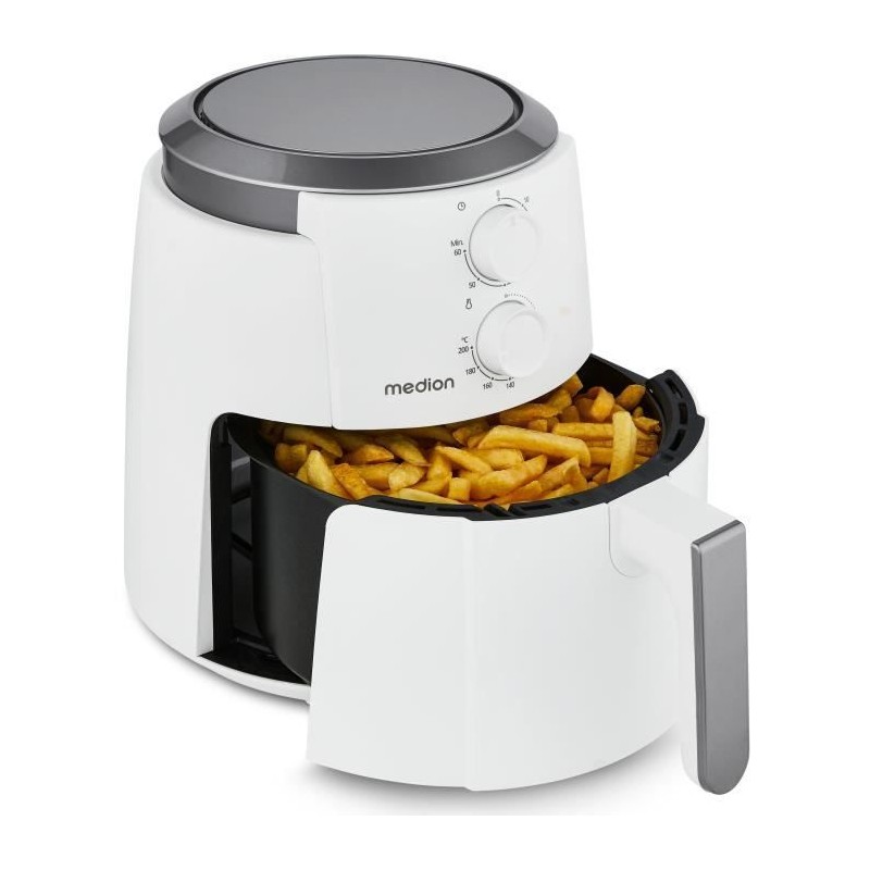 Friteuse a air chaud - MEDION - MD13020 - Airfryer - 1500 watts - Minuterie 60 min - Jusqu'a 200°C - 4,7 L - Blanc
