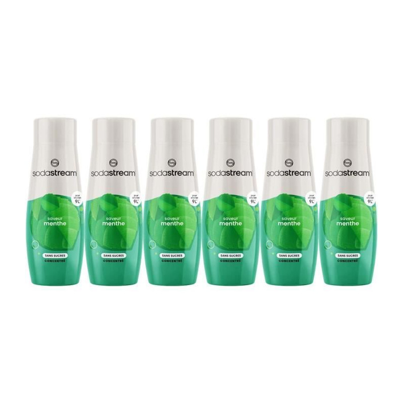 Concentrés SODASTREAM - Lot de 6 concentrés Menthe sans sucres - Jusqu'a 54L de boissons - 440 ml