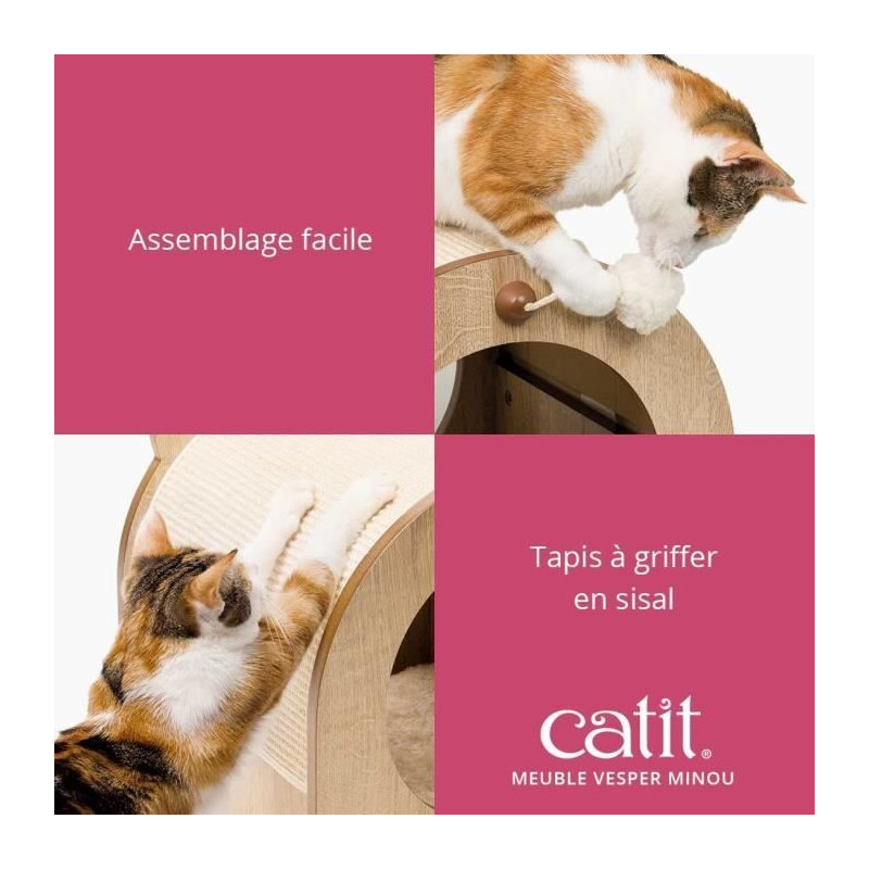 MDF scratch-off furniture - Comfortable two-hole hide - Accessory to protect your furniture from scratch marks - Comfortable cushion made of viscoelastic foam - Replaceable sisal scratch pad - 36 x 36,5 x 40,5 cm - Light brown - For cat.
