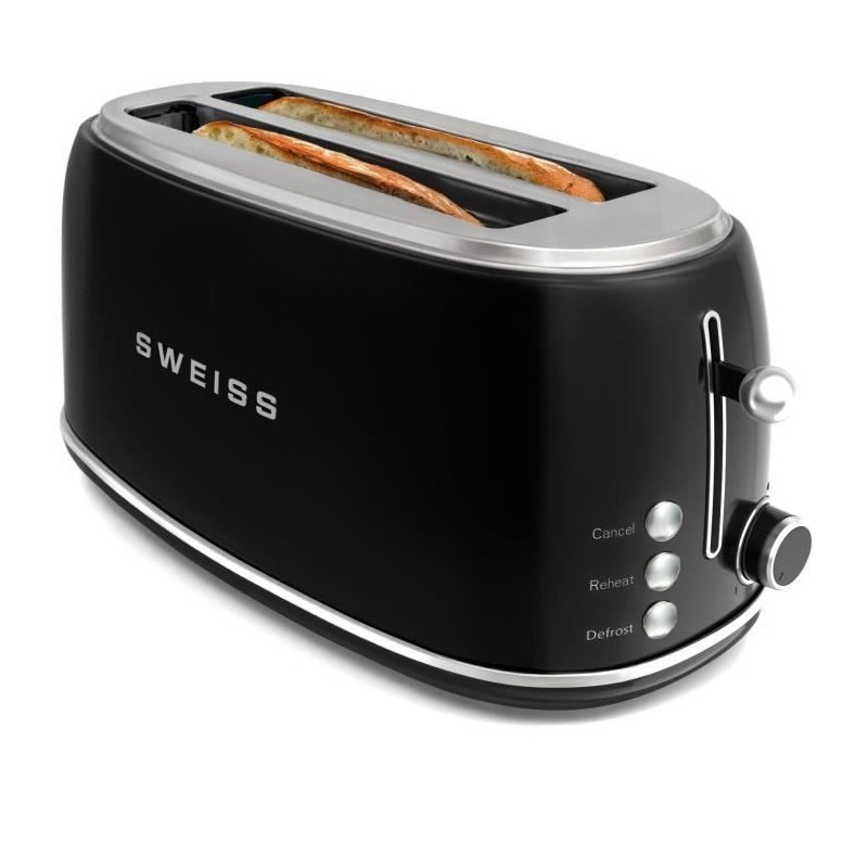 Grille-pain vintage - SWEISS - GRV9 - 2 fentes - 1500 W - Noir