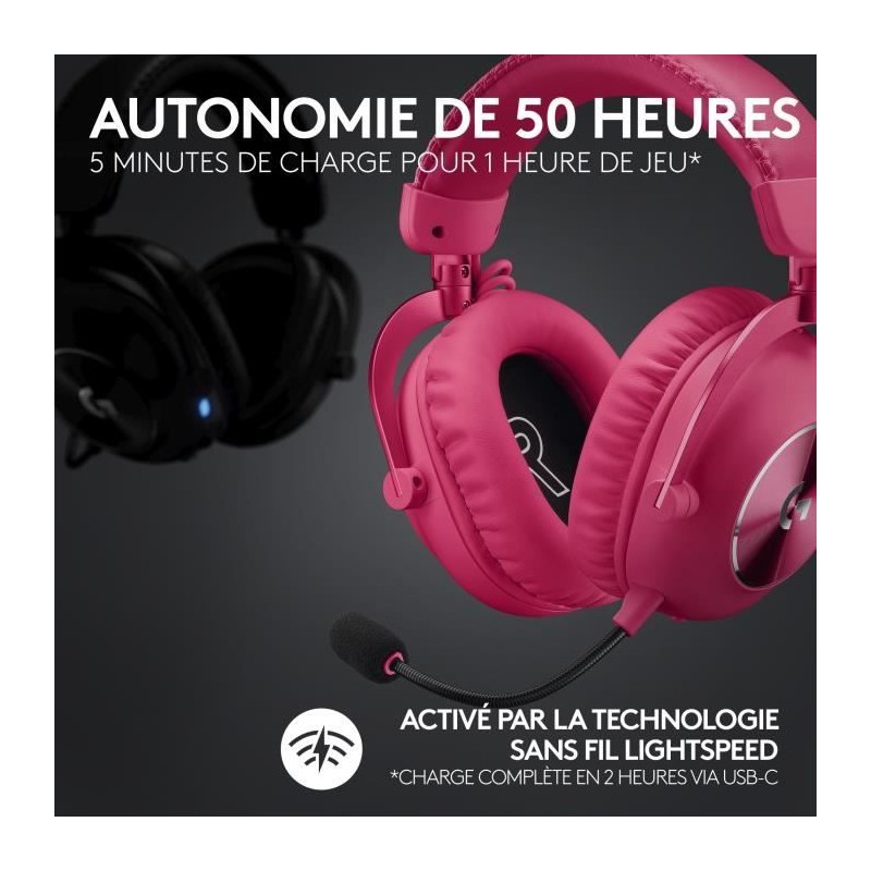 Casque gamer - Sans fil - Logitech G - Lightspeed - Rose