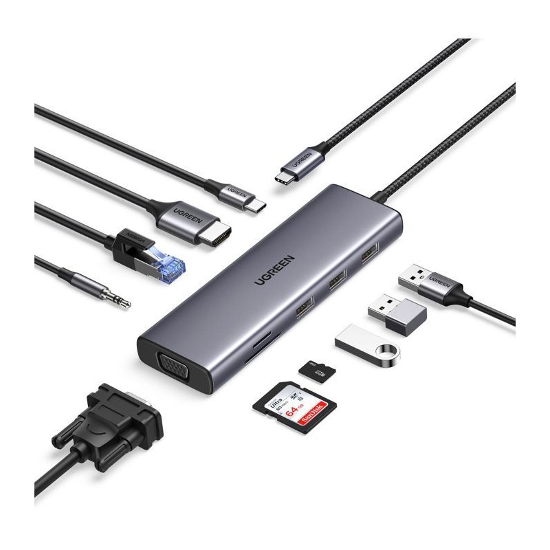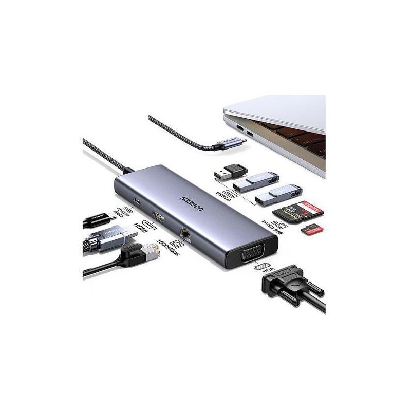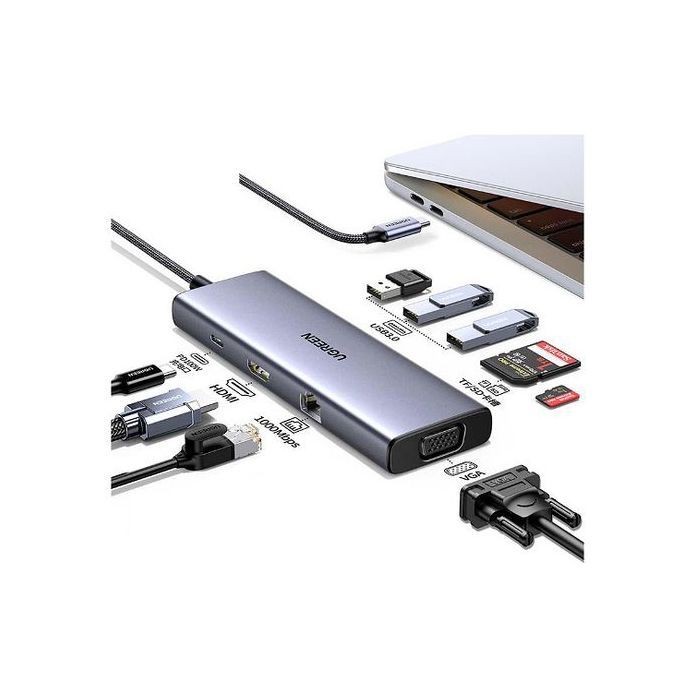 Hub USB-C 9 en 1 - UGREEN - HDMI, VGA, RJ45, SD, TF, USB-C - Noir