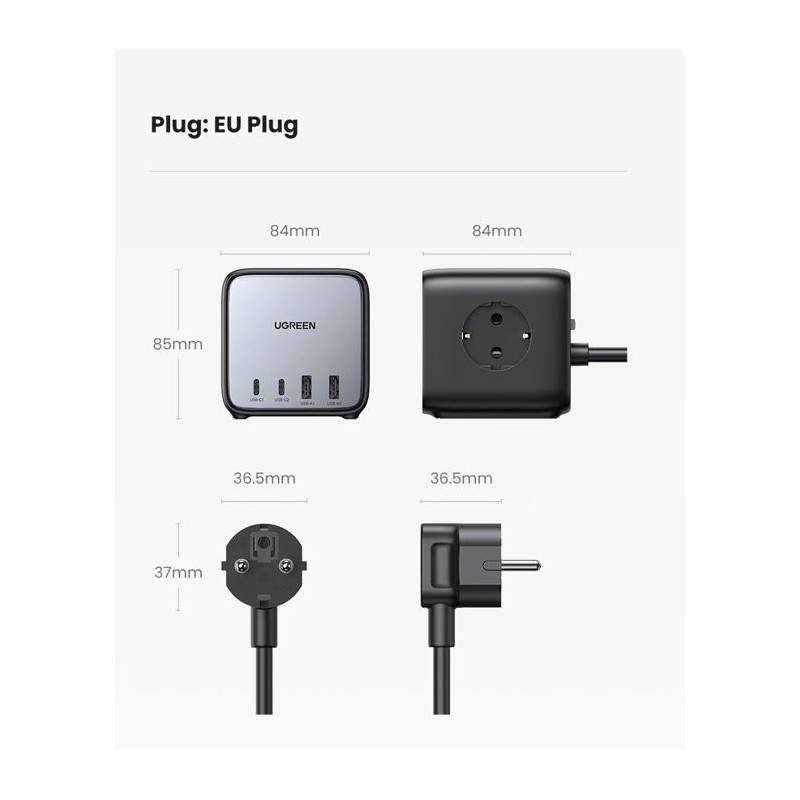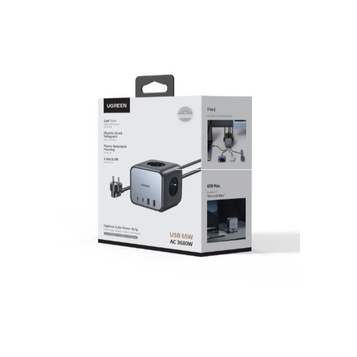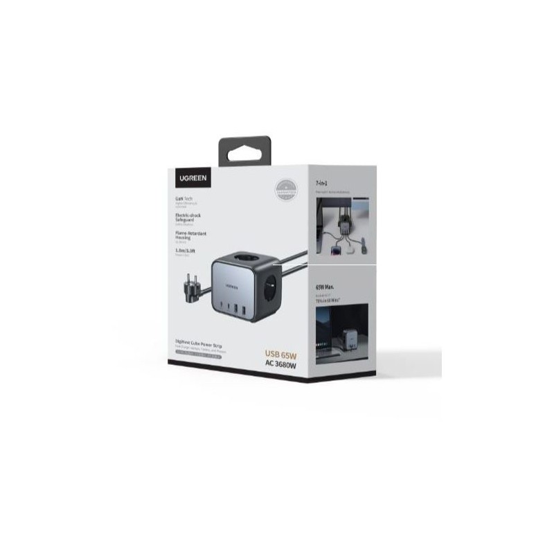 Chargeur rapide de bureau - UGREEN - 65W - Avec prises intégrées - Gris / Noir
