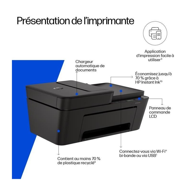 Imprimante tout-en-un HP DeskJet 4310 jet d'encre couleur - 3 mois d'Instant ink inclus avec HP+
