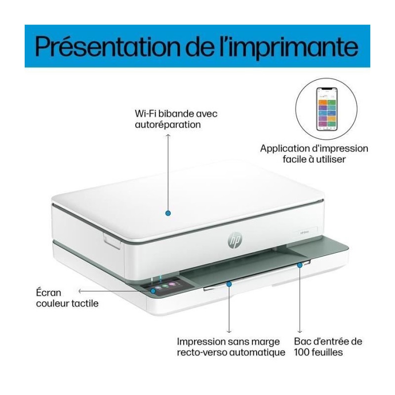 Imprimante tout-en-un HP Envy 6130e Jet d'encre couleur - Copie Scan - 3 mois d'Instant ink inclus avec HP+