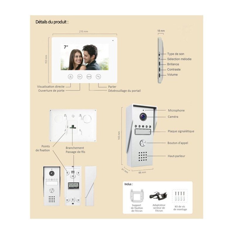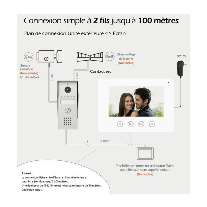 Portier Vidéo - KYF - Filaire - Connecté Wifi - Ecran tactile 7'' - 2 fils