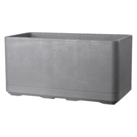 Jardiniere Muret Cosmo AshGrey a roulettes 78 x h39 cm en Matiere Recyclat. Injectée recyclée & recyclable, résistante au gel, résistante aux UV Volume 74,4L. Coloris Gris