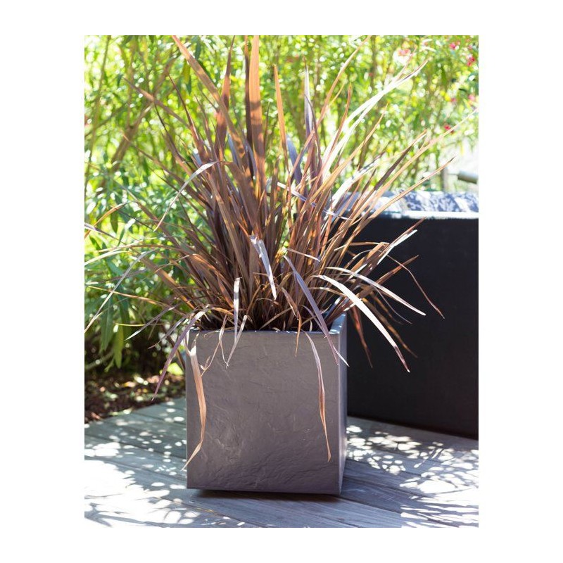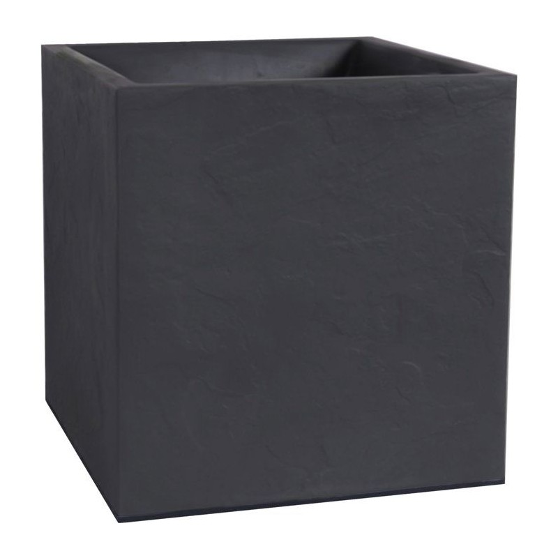 Pot de fleurs Carré 40 cm - EDA - Volcania - 31 L - Intérieur/Extérieur - Décor Pierre - 39,5 x 39,5 x H 43,5 cm - Gris Anth