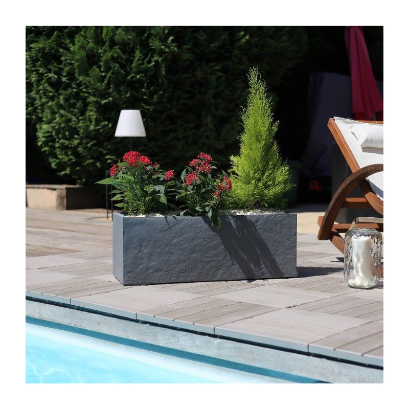 Balconniere - EDA - Volcania Up - 25 L - Intérieur/Extérieur - Décor Pierre - 59 x 19,5 x 22,8 cm - Gris Anthracite