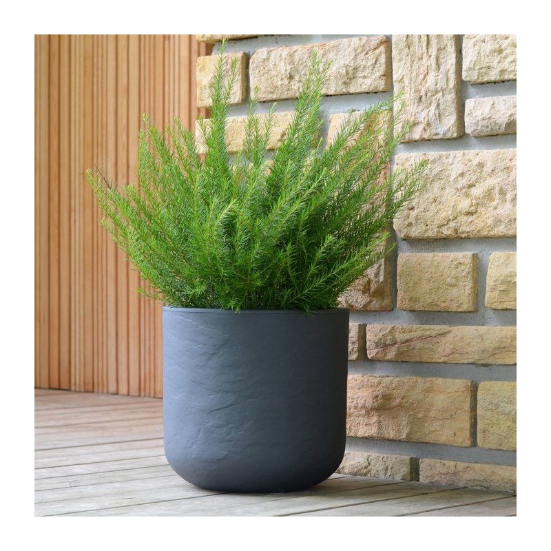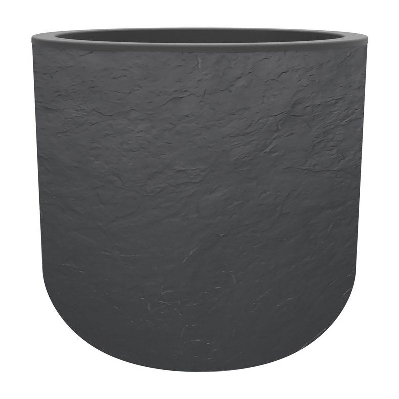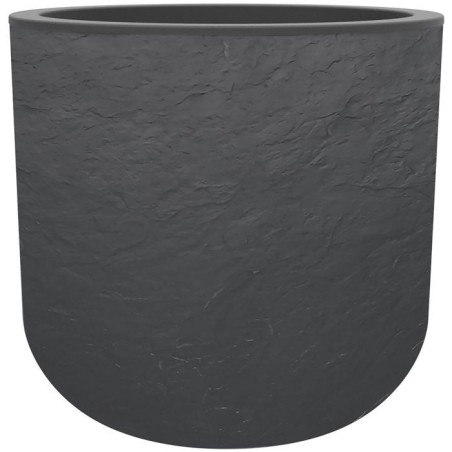 Pot de fleurs Rond - EDA - Volcania Up - 32,5 L - Intérieur/Extérieur - Décor Pierre - Ø 38,5 x H. 36,8 cm - Gris Anthracite