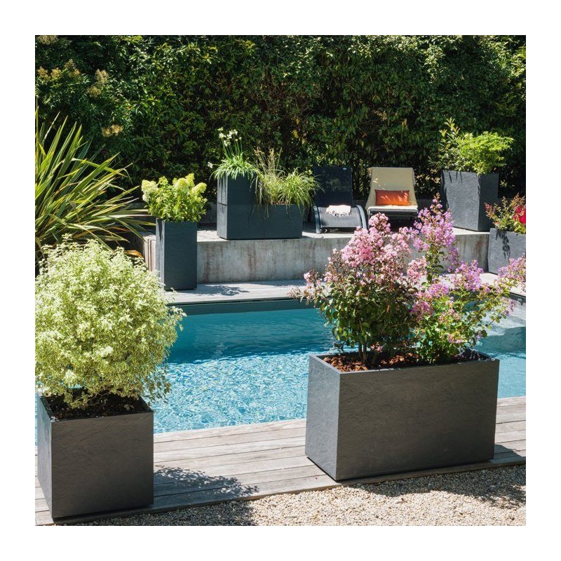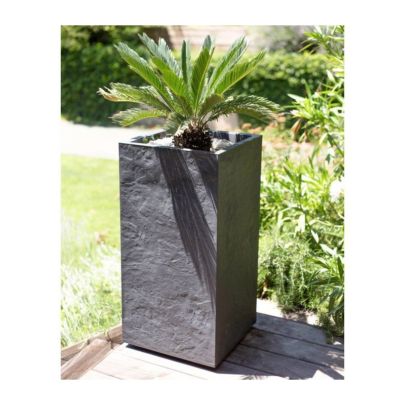Bac a fleurs Carré Haut 40 cm - EDA - Volcania - 31 L - Intérieur/Extérieur - 39,5 x 39,5 x H 80 cm - Gris Anthracite