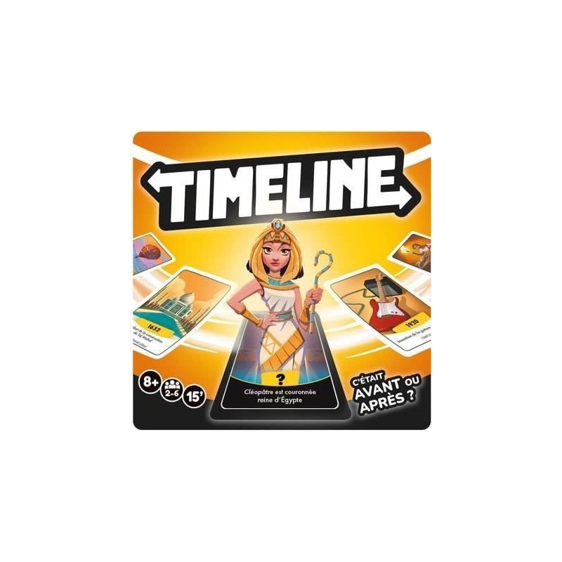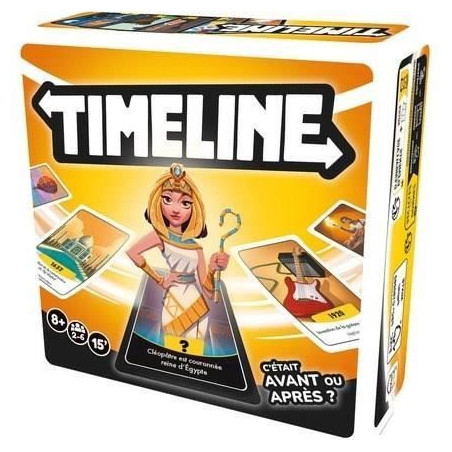 Découvrez le jeu Timeline, un jeu historique où vous devez placer des événements sur une frise chronologique. Évitez de mal placer vos cartes, sinon piochez-en une nouvelle ! Contient 96 cartes et une regle de jeu. Parfait pour les adultes et les enfants a partir de 8 ans.