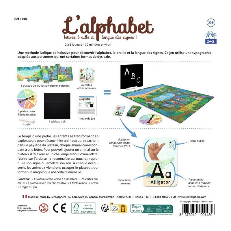 Jeu de société - SENTOSPHERE - L'Alphabet - Majuscule - Minuscule - Braille - Langue des Signes - Des 3 ans